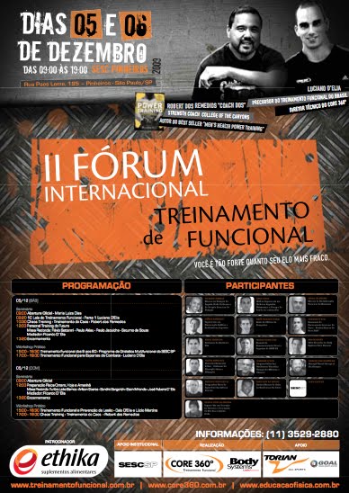I will be doing two lectures on Saturday the 5th, one on ‘Training your clients like athletes’ (based on my Men’s Health Power Training principles…) and one on’ CHAOS agility training for the general population’ . I will also be doing an hands-on workshop on the CHAOS training on Sunday the 6th. We are expecting nearly 1000 people for this event so it should be an amazing weekend! VIVA BRASILIA!